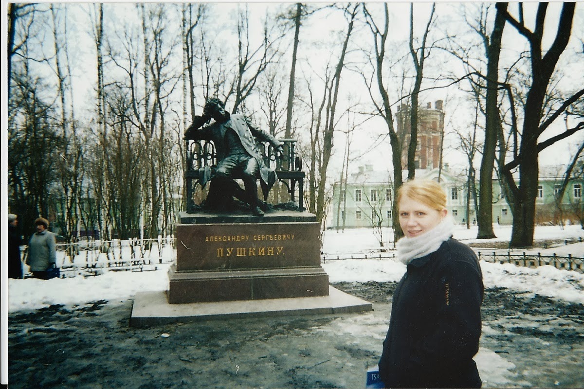 At the St. Peter and Paul fortress. Behind you can take a gander at the ice capped river and the line of nearly naked bodies sunbathing along the fortress wall. I think this day it was about 35 degrees...just above freezing.
